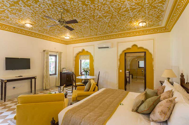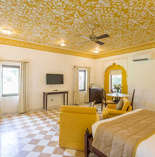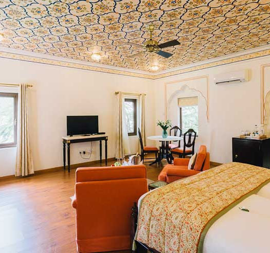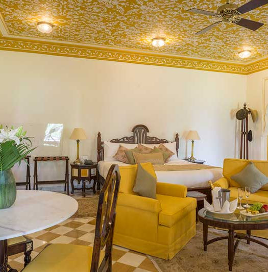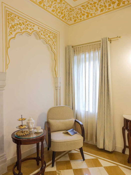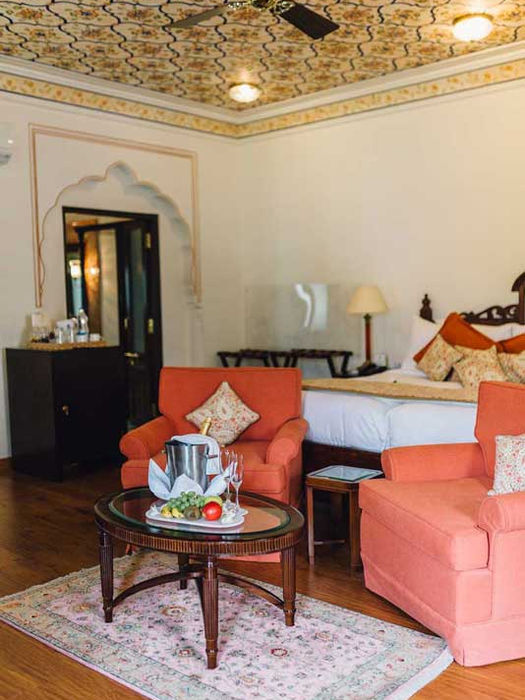 These luxuriously expansive Heritage Premium Suites are guest rooms spread over 60 square meters and feature private terraces or access to the pool gardens. Feel kingly with the regal charm of the original marble floorings & doors at our heritage hotel in Jaipur.